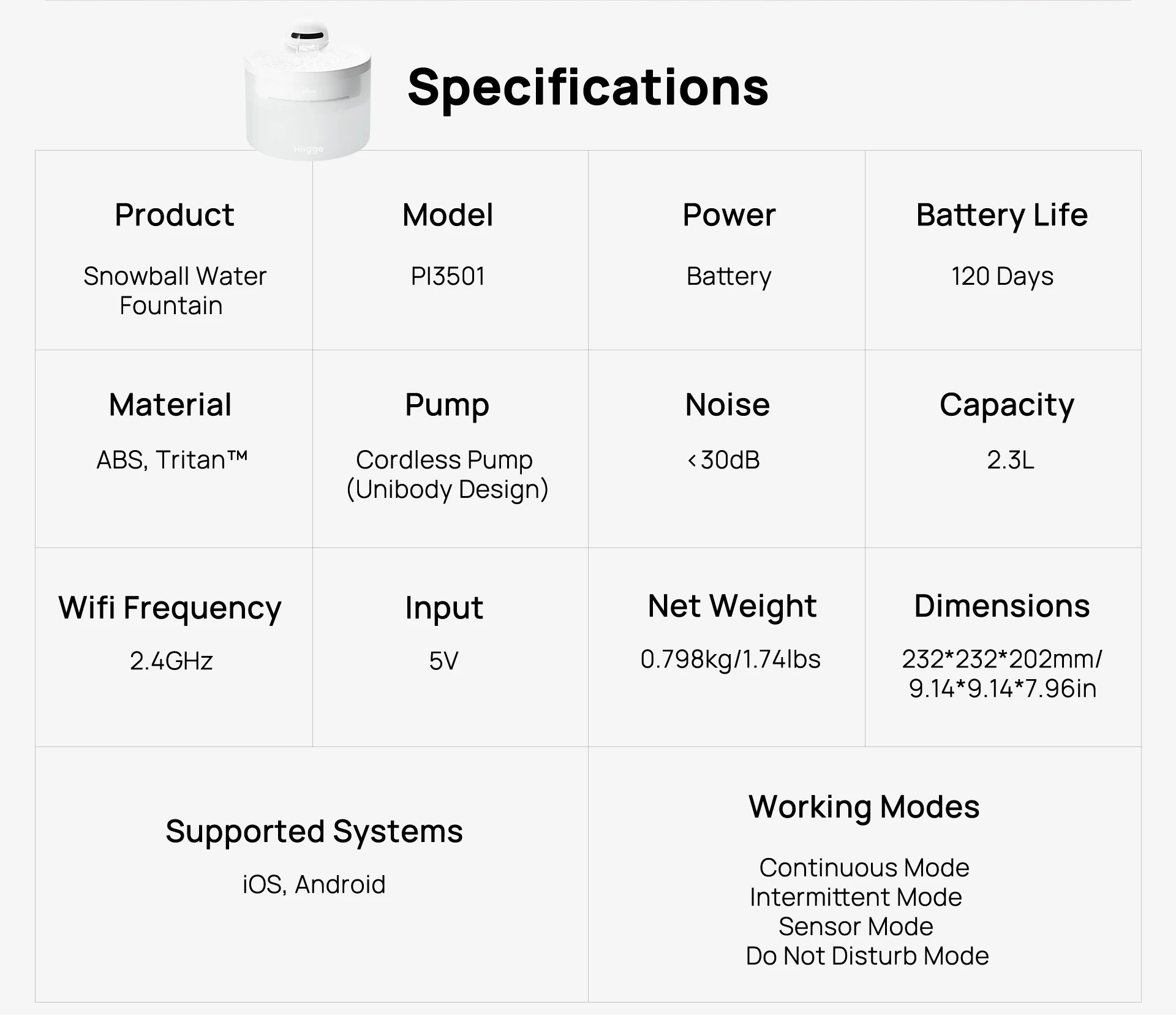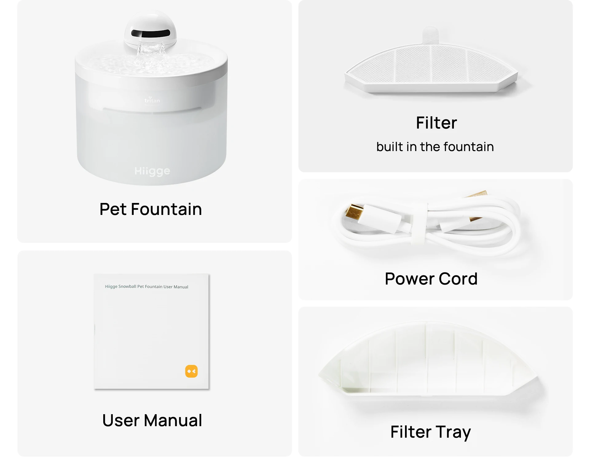 2.Created With Safety & DurabilityWe are the FIRST brand to use Tritan™ materials (FDA certified) for the water tank of Snowball pet fountain.