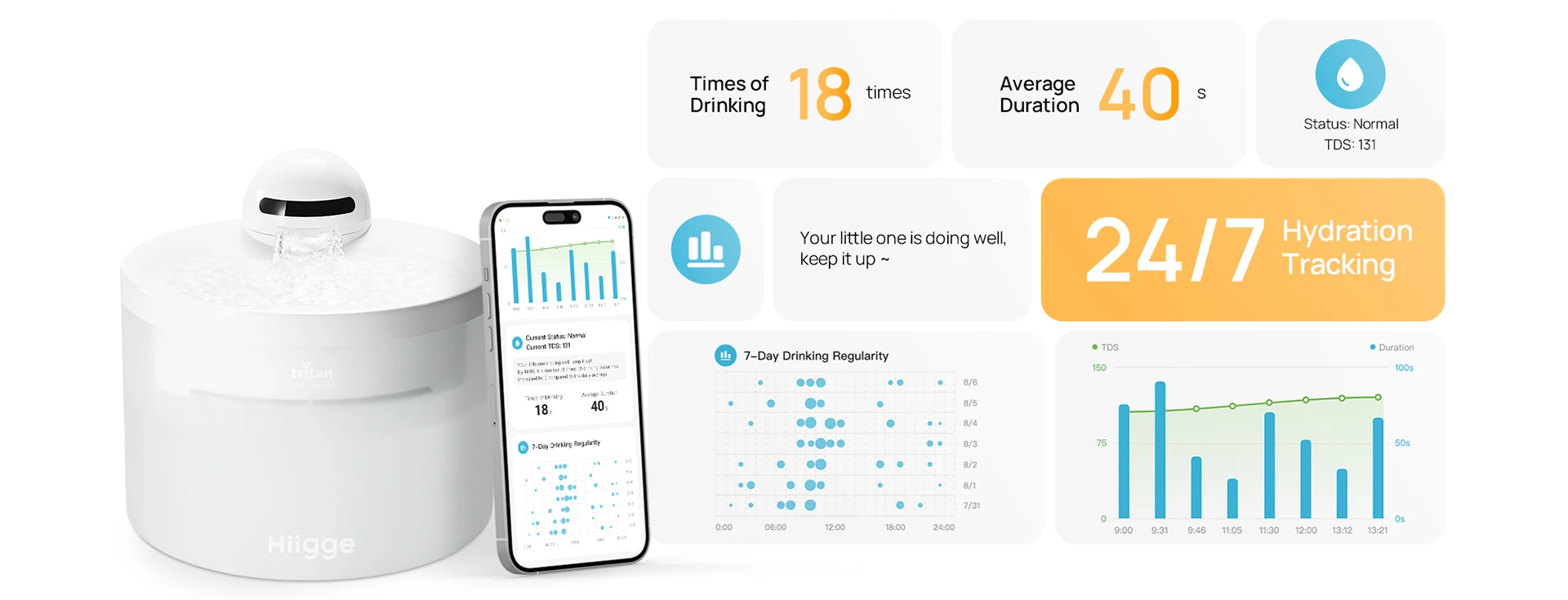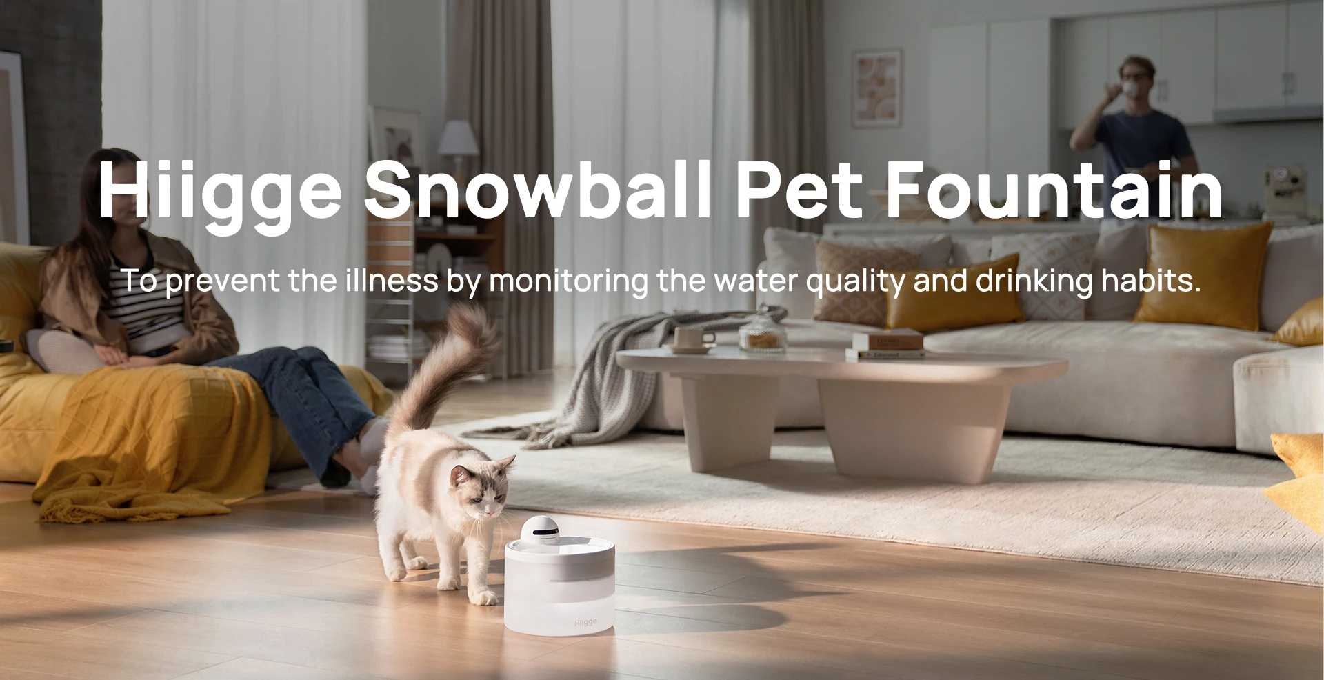 Hiigge Snowball Cat Water Fountain Wireless Automatic Water Dispenser for Dog Cordless Pet Drinker with data analysis of water quality and drinking habits