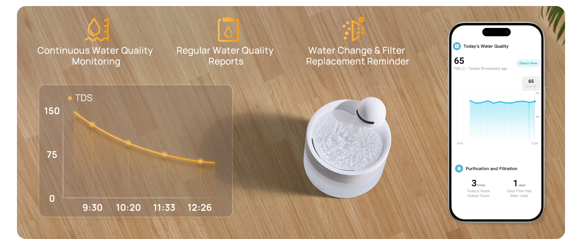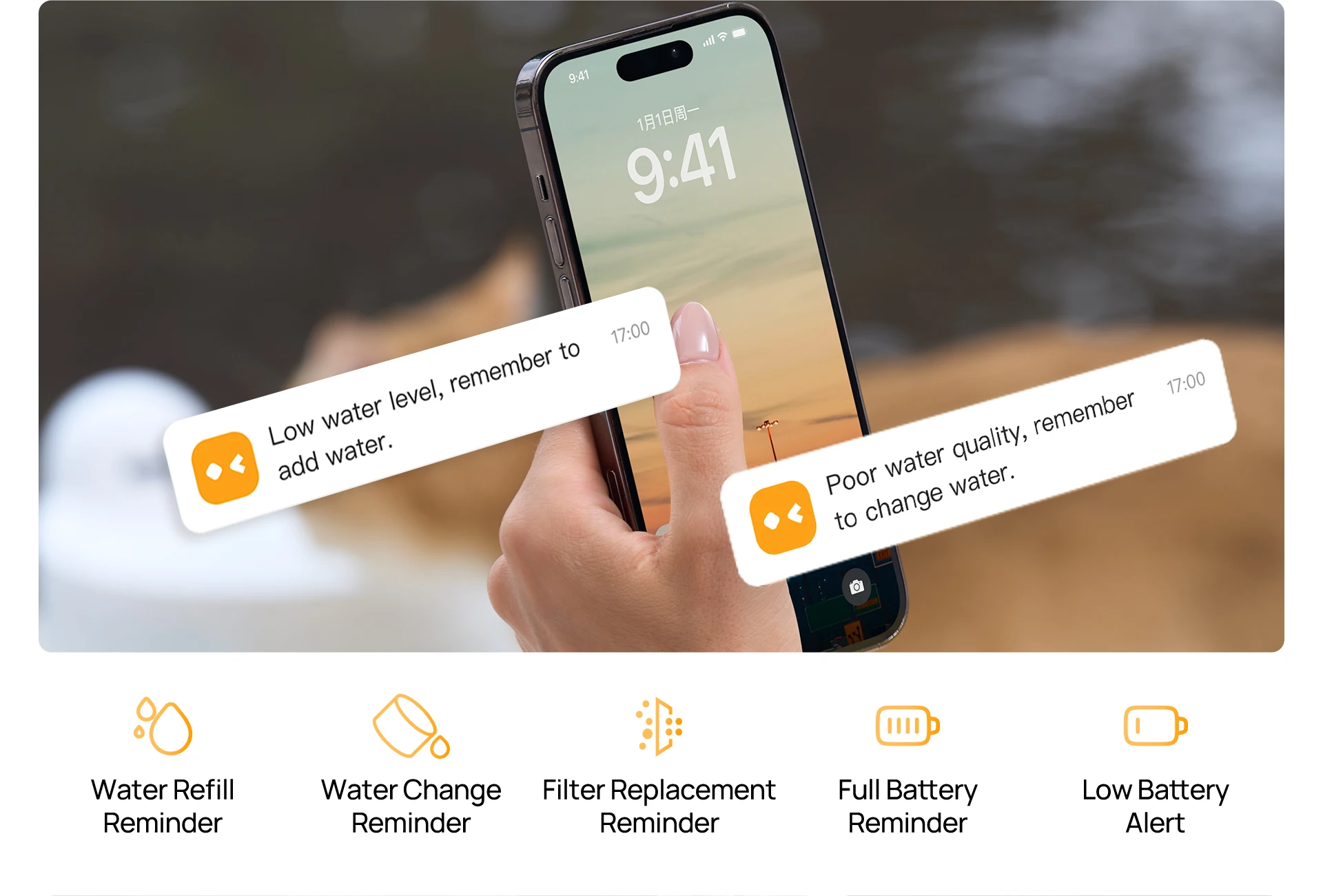 6.Smart RemindersAlways stay informed with timely alerts and receive notifications, ensure your pet's hydration system is always ready to perform at its best.