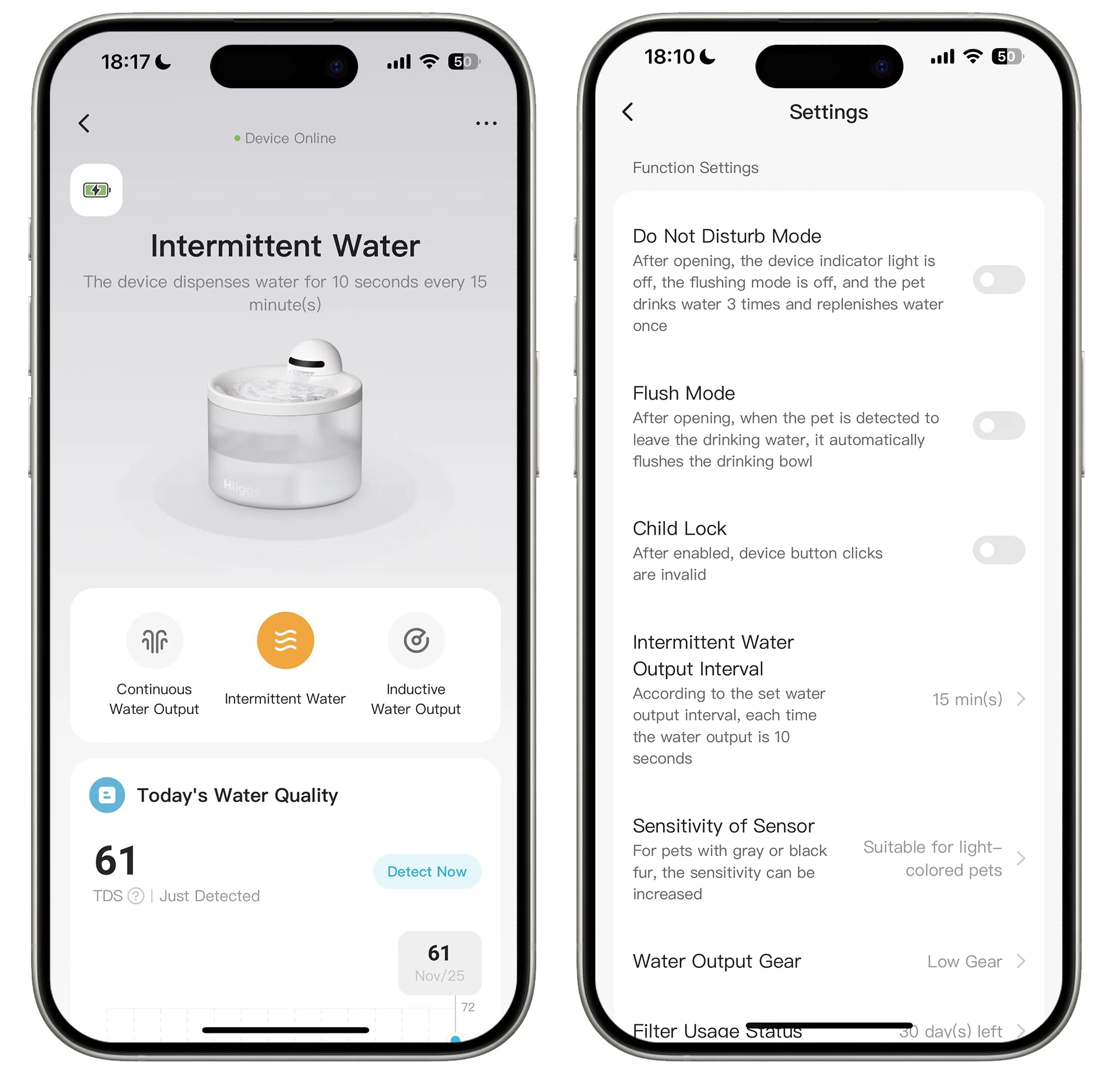 ----Do Not Disturb Mode: Turn off the indicator light and lower the water dispensing frequency to minimize sound.